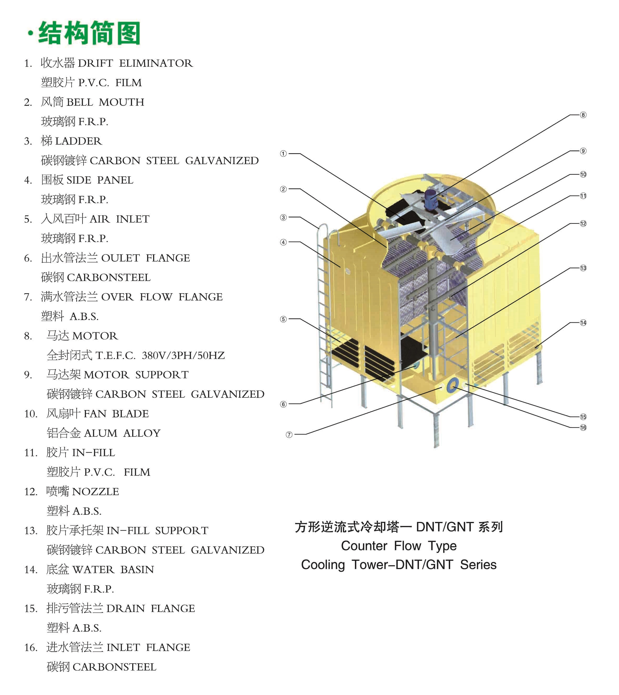 ◆ DNT系列逆流式低噪音方形冷卻塔參數(shù)表