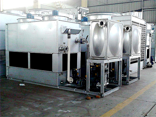 密閉式冷卻塔,簡(jiǎn)稱閉式冷卻塔,(也叫蒸發(fā)式空冷器,封閉式冷卻塔)將管式換熱器置于塔內(nèi),通過(guò)流通的空氣、噴淋水與循環(huán)水的熱交換保證降溫效果。由于是閉式循環(huán),其能夠保證水質(zhì)不受污染,很好的保護(hù)了主設(shè)備的運(yùn)行,提高了使用壽命。外界氣溫較低時(shí),可以停掉噴淋水系統(tǒng),起到節(jié)水效果。推著國(guó)家節(jié)能減排政策的實(shí)施和水資源的日益匱乏,近幾年密閉式冷卻塔在冶金、航空、電力、化工、機(jī)械、石油、食品、塑料、橡膠等等行業(yè)得到了廣泛的應(yīng)用。