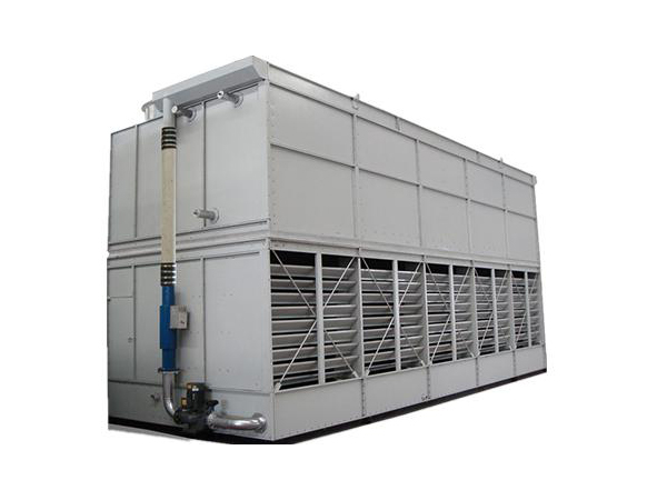蒸發(fā)冷卻器可以看作是以水作為冷卻介質(zhì)的冷卻器與冷卻塔的組合式換熱器。通常,在工業(yè)上為節(jié)省水冷式冷卻器的用水,采用把水在冷卻塔中冷卻,循環(huán)使用。而蒸發(fā)冷卻器則把冷卻器和冷卻塔組合為一體,被冷卻的工藝流體在管內(nèi)流動(dòng),水和空氣同時(shí)在管外流動(dòng),管內(nèi)流體的熱量通過(guò)管外的水傳給空氣,達(dá)到冷卻的目的??諝鈴恼舭l(fā)冷卻器下部的四周被吸入,從水平布置的傳熱管束間隙中通過(guò),冷卻水用循環(huán)水泵從蓄水池吸入并噴淋到傳熱管上,其中一部分水蒸發(fā),剩余的水匯集到蓄水池中,與補(bǔ)給水一起供循環(huán)使用。工藝流體自管束的上聯(lián)箱進(jìn)入管束,從下聯(lián)箱流出。